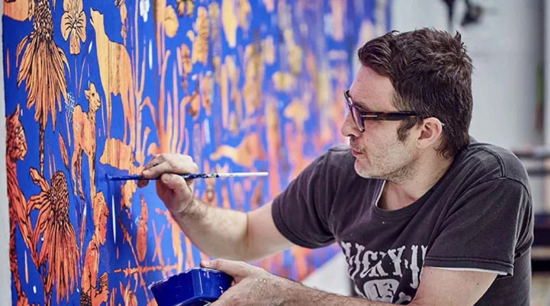 He then moved to Brighton (1997), secured his first studio and began developing his practice, exhibiting in the Brighton Fringe festival from 1997-98, gaining local attention via a collaboration with the band The Levellers. His art was seen by the Director of the Horsham Arts centre who offered him a solo show in 1999. This received unrecedented press attention. He has since gone on to become one of the most prominent, recognised and sought after UK artists today.