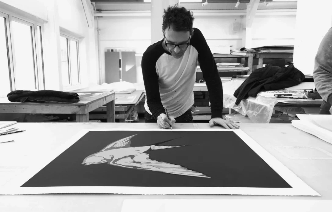 He has enjoyed high profile collaborations with Max Factor, British Airways, Pete Townsend (The Who), Paolo Nutini, Hush, The Keats Museum, Institute for Digital Archeology, (with poet laureatte Simon Armatage and poet Scarlet Sabett), singer Alison Mosshart & Wasploitation records, UK designer Mercy Delta, Sara Berman, Penguin Random House, menswear designer Gresham Blake, Tom Speight and Atomic Ski.